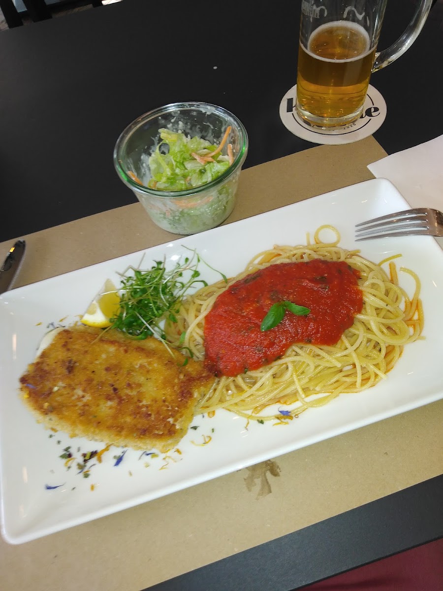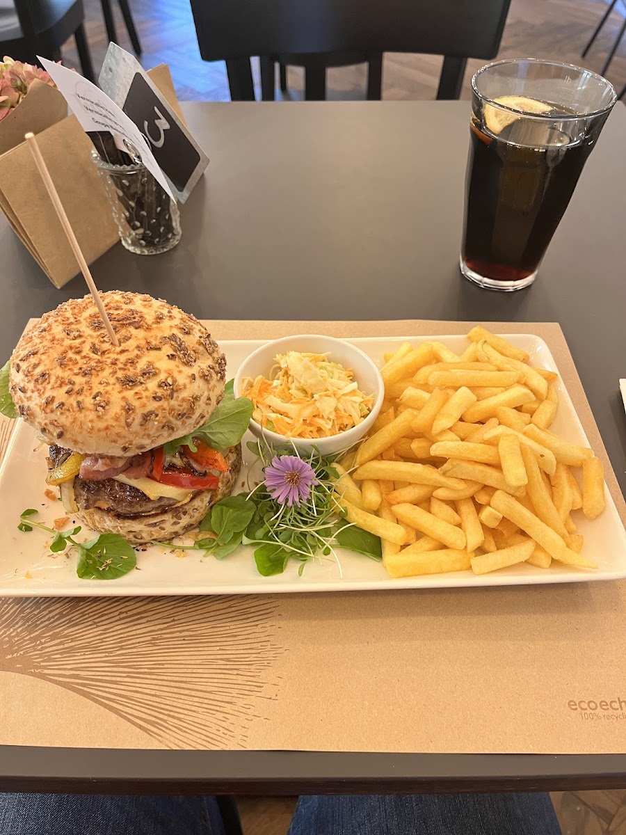 Food offerings lean toward familiar, well-prepared dishes served fresh, such as their burger menu or the turkey cordon bleu with spaghetti. Portions are thoughtful and generously presented, providing a tasteful lunchtime option that feels a step above typical local canteen fare in the area. Light brunch plates are also available by order, which suits those looking for a leisurely weekend meal.
